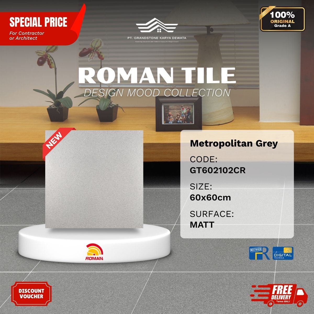![ROMAN DESIGN MOOD AGT602102CR Metropolitan Grey 60x60 [GRADE A] - Image 2](https://grandstone.id/wp-content/uploads/2025/12/FotoDetail_RomanGranit_Metropolitan_Grey_RG60x60.png)