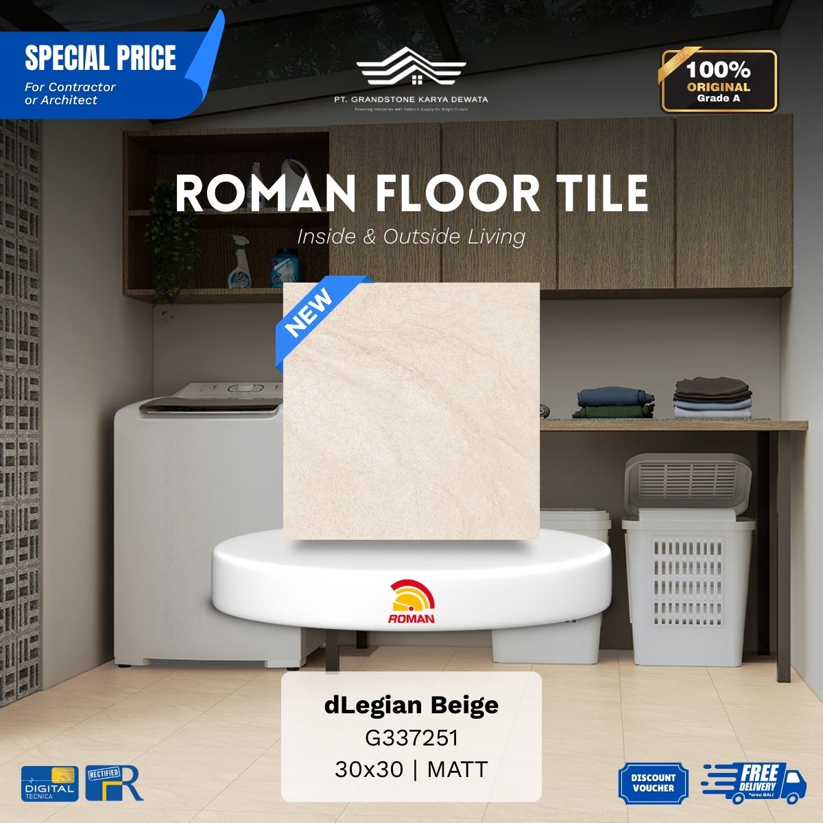 ![ROMAN FLOOR TILE 1G337252 dLegian Taupe 30x30 [GRADE A] - Image 2](https://grandstone.id/wp-content/uploads/2026/01/FotoDetail_Roman_dLegian_Taupe_30x30.png)