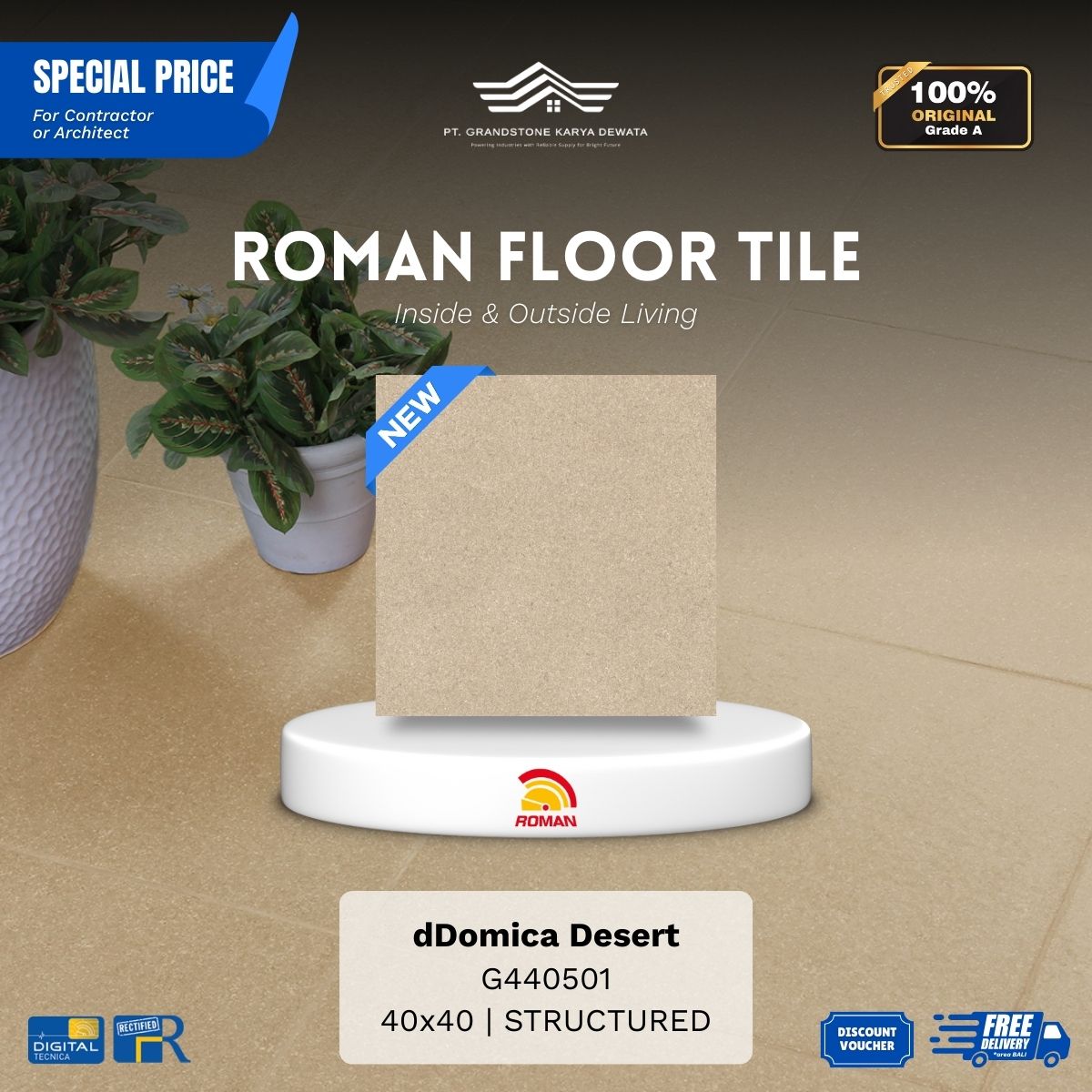 ![ROMAN FLOOR TILE 1G440505 dKrubera Grigio 40x40 [GRADE A]](https://grandstone.id/wp-content/uploads/2026/01/dKrubera-Grigio.jpg)