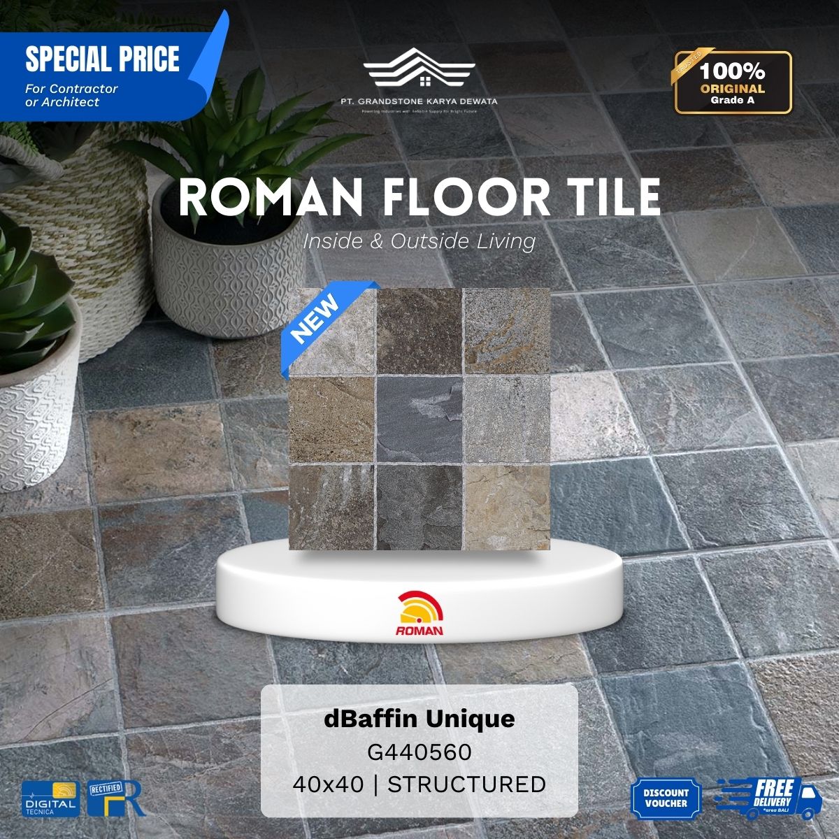 ![ROMAN FLOOR TILE 1G440558 dBaffin Natural 40x40 [GRADE A] - Image 3](https://grandstone.id/wp-content/uploads/2026/01/RandomFaces_Roman_dBaffin_Natural_40x40.png)