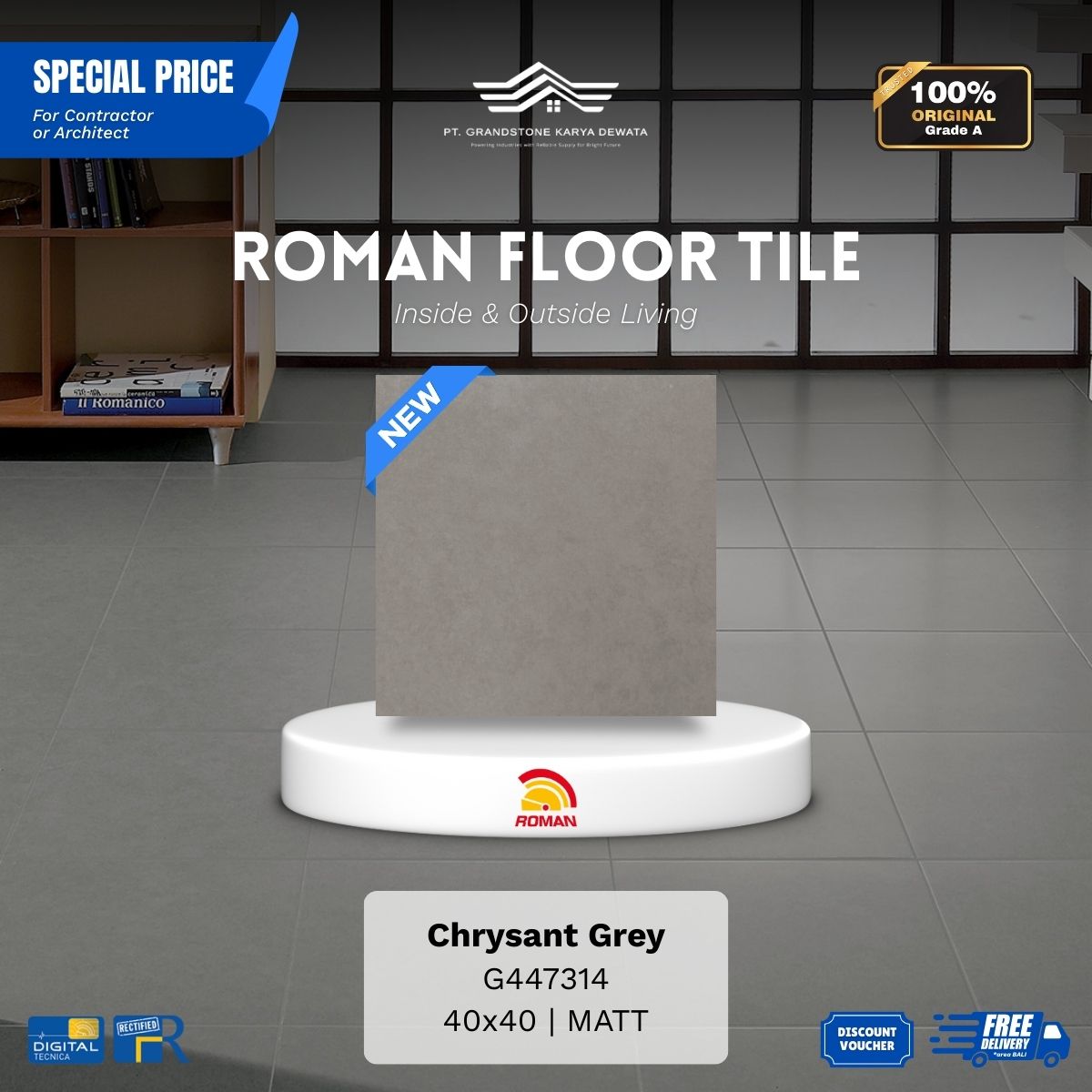 ![ROMAN FLOOR TILE 1G447257 dAguilar Perla 40x40 [GRADE A] - Image 2](https://grandstone.id/wp-content/uploads/2026/01/FotoDetail_Roman_dAguliar_Perla_40x40.png)