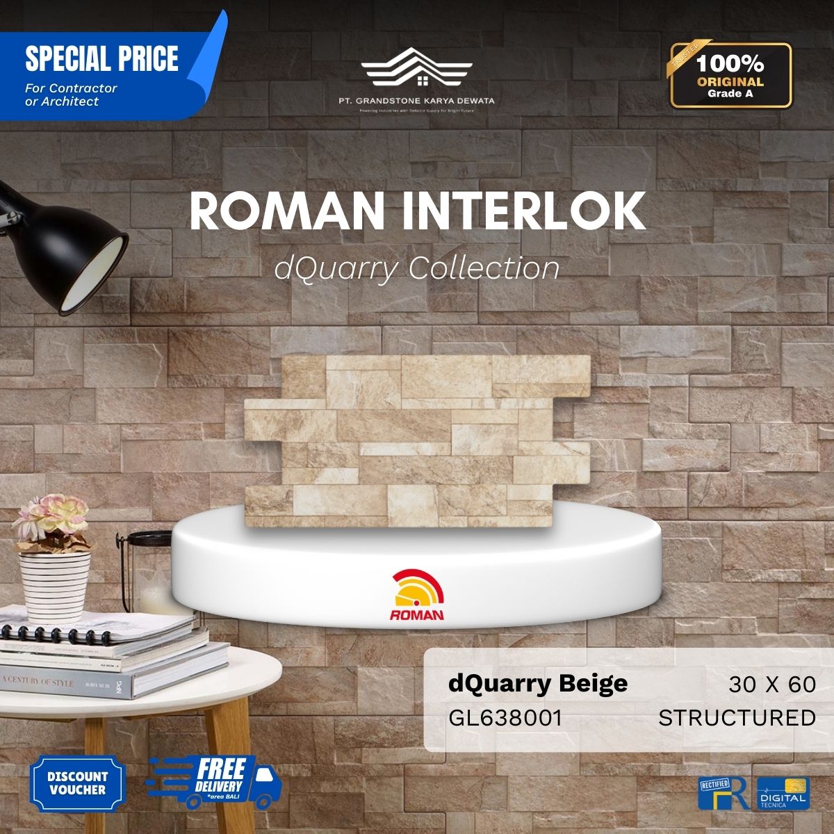![ROMAN INTERLOK 1GL638001 dQuarry Beige 30x60 [GRADE A] - Image 2](https://grandstone.id/wp-content/uploads/2026/01/dQuarry_Beige_30x60_Detail.png)