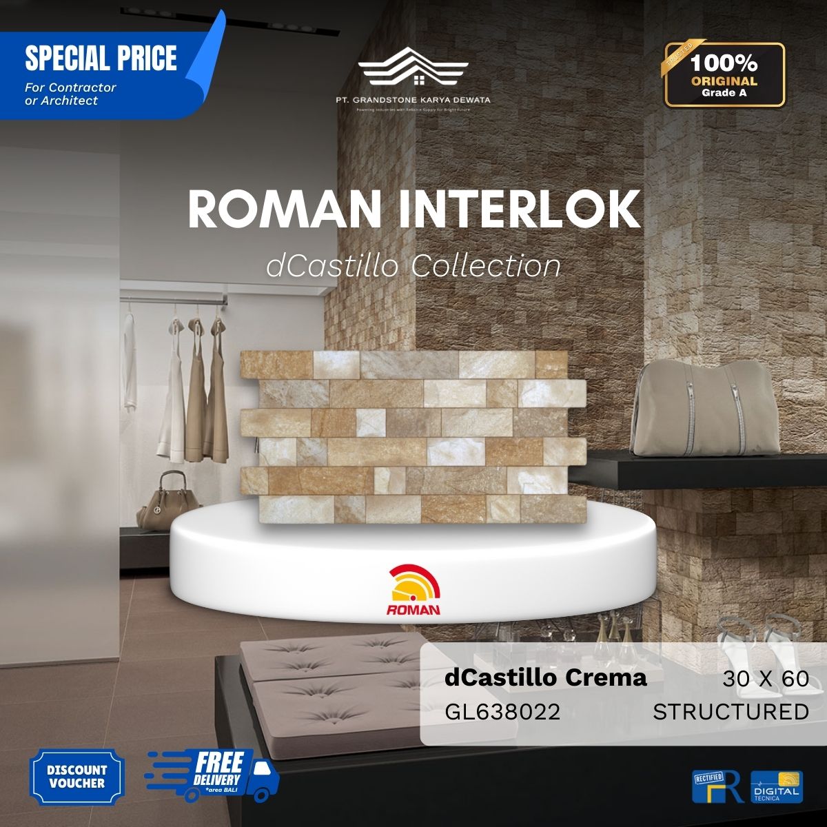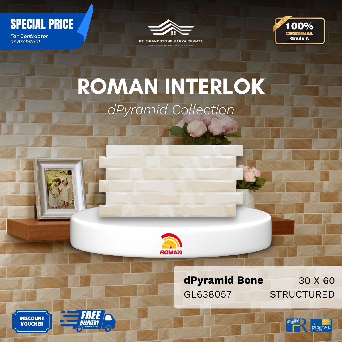 ![ROMAN INTERLOK 1GL638057 dPyramid Bone 30x60 [GRADE A] - Image 3](https://grandstone.id/wp-content/uploads/2026/01/RandomFaces_Roman_dPyramid_Bone_30x60.png)