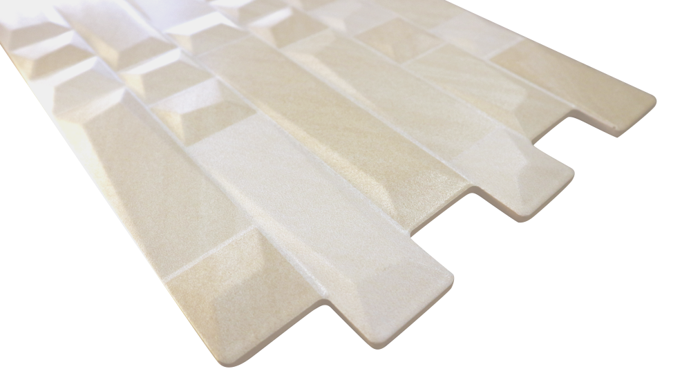 Kini koleksi Roman Interlock akan semakin lengkap dengan hadirnya dPyramid berukuran 30×60 cm. Dengan teknologi Digital Tecnica, setiap keping terdiri dari kombinasi beberapa ukuran persegi panjang dan memiliki permukaan matt. Selain itu, koleksi ini juga memiliki permukaan yang cukup unik dengan trapesium piramida 3D pada setiap keping sehingga memberikan efek timbul (akan terlihat optimal dengan bantuan pantulan cahaya). dPyramid, yang terinspirasi oleh motif batu pasir, hadir dalam 2 pilihan warna alami: krem dan beige. Koleksi ini cocok diaplikasikan pada dinding foyer, butik, salon, restoran, atau sebagai aksen manis pada dinding besar.