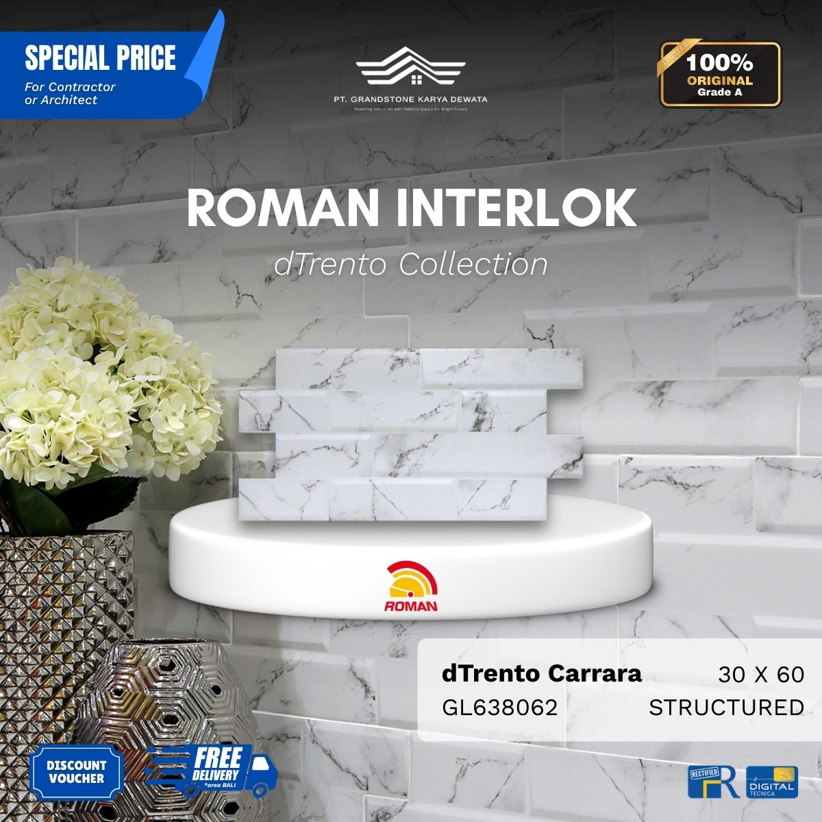 ![ROMAN INTERLOK 1GL638062 dTrento Carrara 30x60 [GRADE A] - Image 3](https://grandstone.id/wp-content/uploads/2026/01/RandomFaces_Roman_dTrento_Carrara_30x60.png)