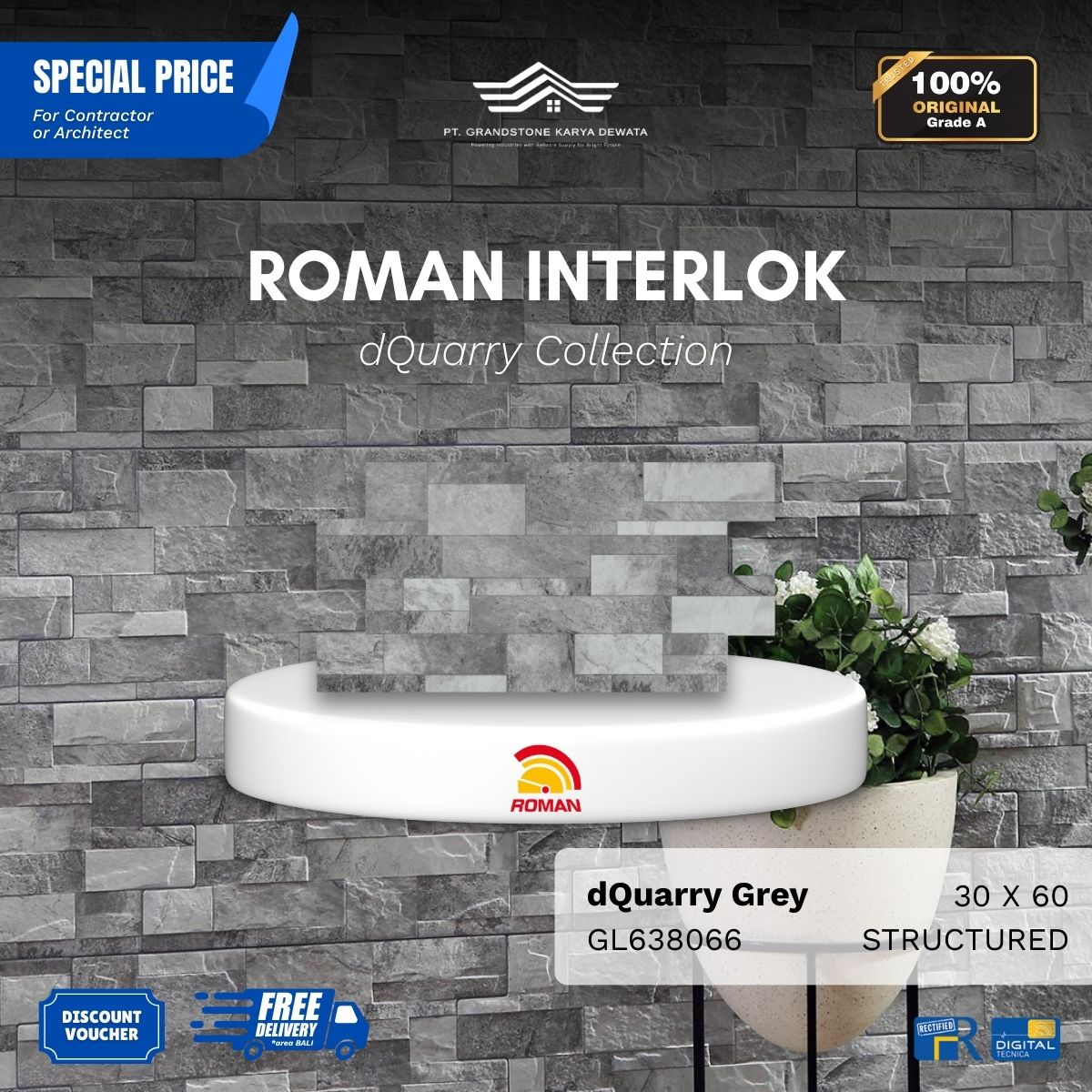 ![ROMAN INTERLOK 1GL638066 dQuarry Grey 30x60 [GRADE A] - Image 2](https://grandstone.id/wp-content/uploads/2026/01/dQuarry_Grey_30x60_Detail.png)