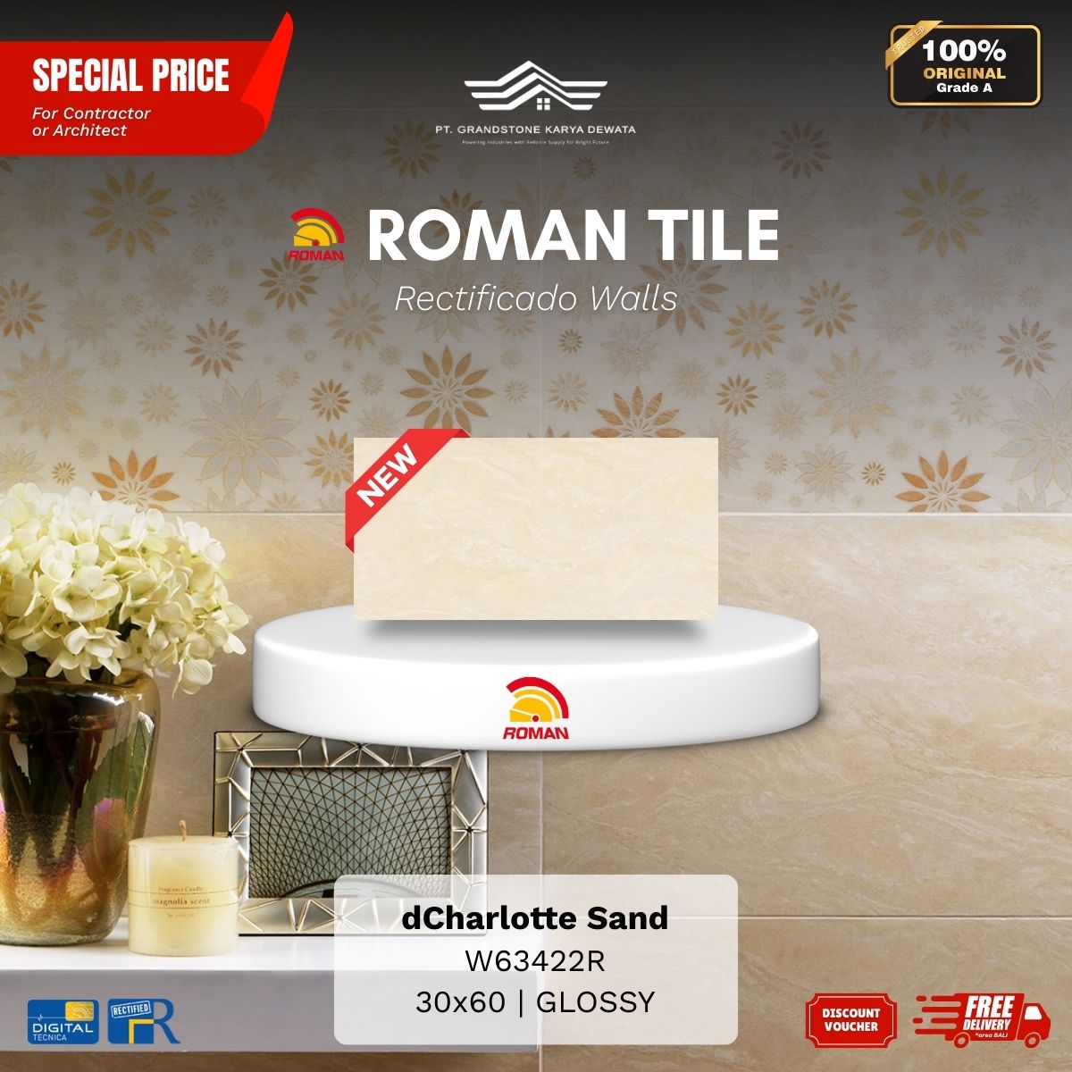 ![ROMAN RECTIFICADO WALL 1W63422R dCharlotte Sand 30x60 [GRADE A] - Image 3](https://grandstone.id/wp-content/uploads/2025/11/RandomFaces_Roman_dCharlotte_Sand_30x60R-e1757475667634.jpg)