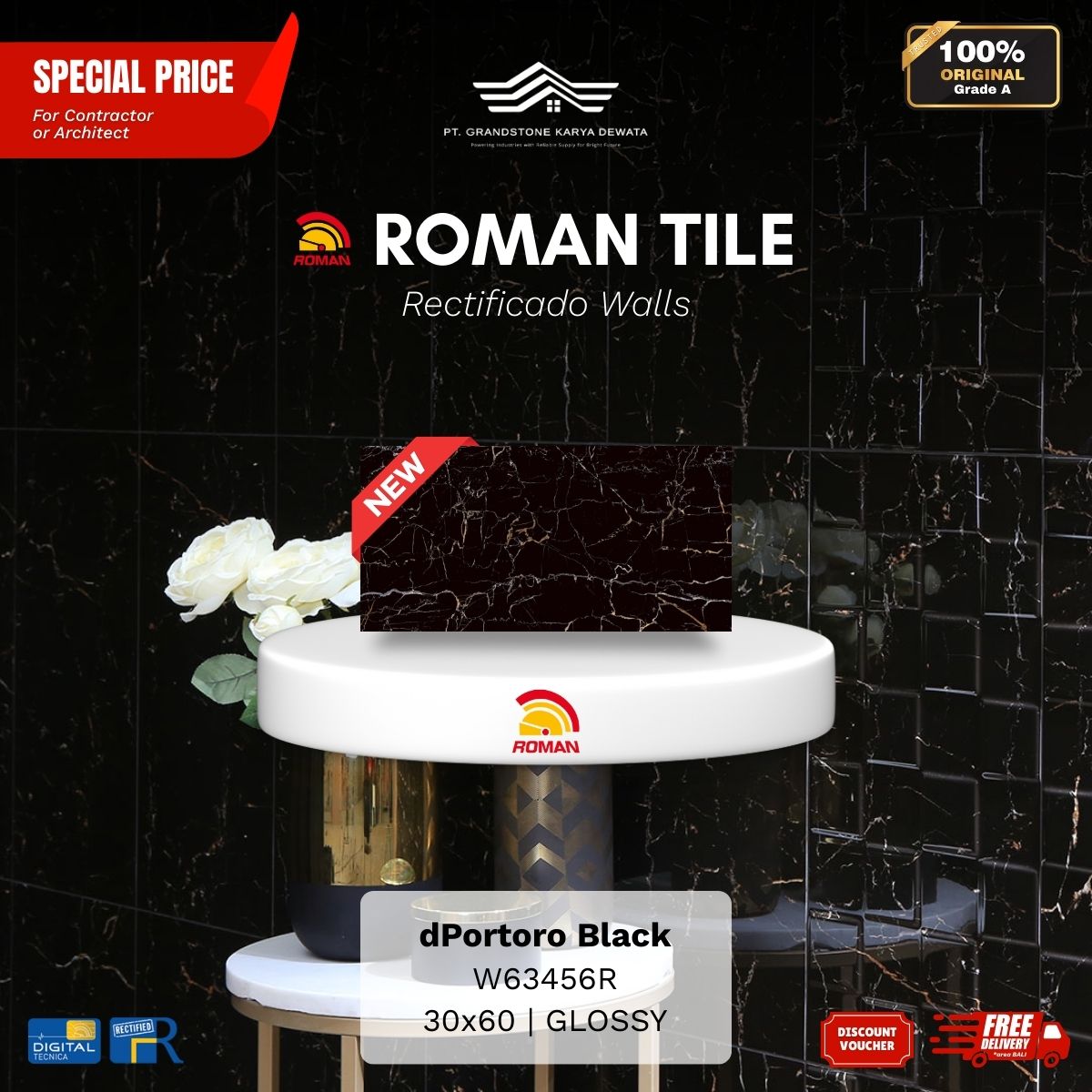 ![ROMAN RECTIFICADO WALL 1W63456R dPortoro Black 30x60 [GRADE A] - Image 3](https://grandstone.id/wp-content/uploads/2025/12/30x60R_dPortoro_Black_Susunan.jpg)