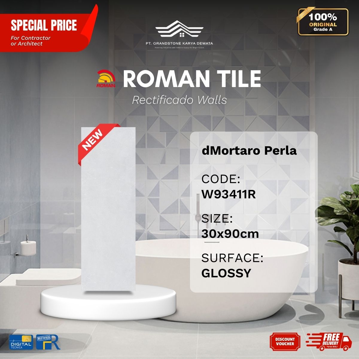 ![ROMAN RECTIFICADO WALL 1W93411R dMortaro Perla 30x90 [GRADE A] - Image 3](https://grandstone.id/wp-content/uploads/2025/12/RandomFaces_Roman_dMortaro_Perla_30x90R.jpg)