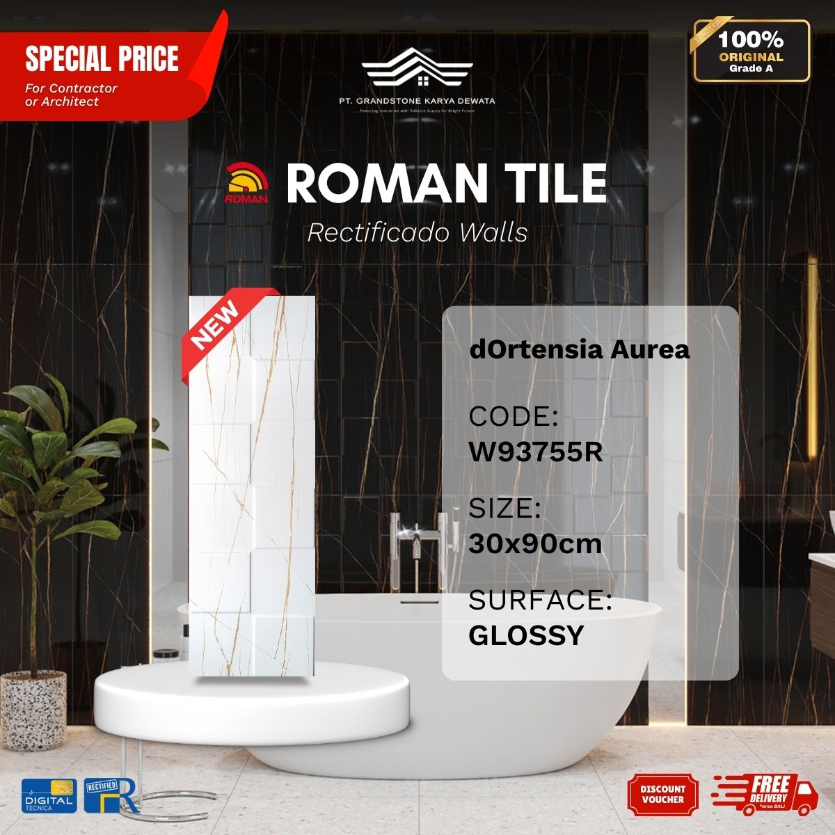 ![ROMAN RECTIFICADO WALL 1W93756R dOrtensia Portoro 30x90 [GRADE A] - Image 3](https://grandstone.id/wp-content/uploads/2025/12/RandomFaces_Roman_dOrtensia_Portoro_30x90R.jpg)