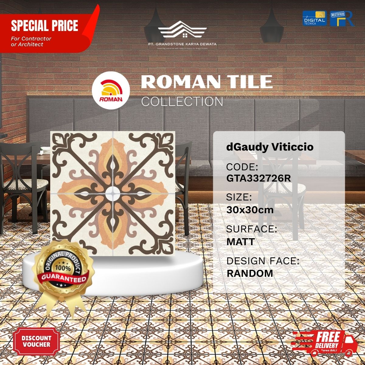 ![ROMAN VINTAGE MOOD AGTA332726R dGaudy Viticcio 30x30 [GRADE A] - Image 2](https://grandstone.id/wp-content/uploads/2025/12/FotoDetail_RomanGranit_dGaudy_Viticcio_RG30x30.png)